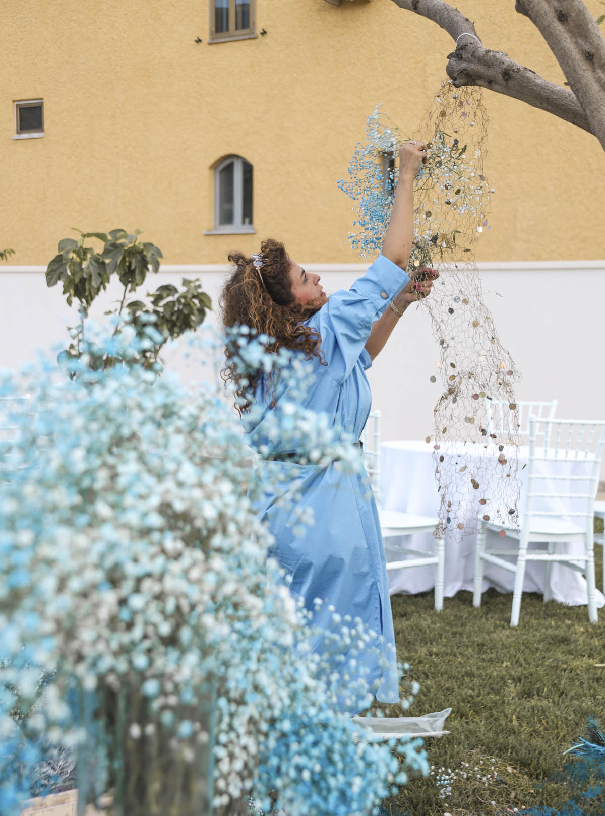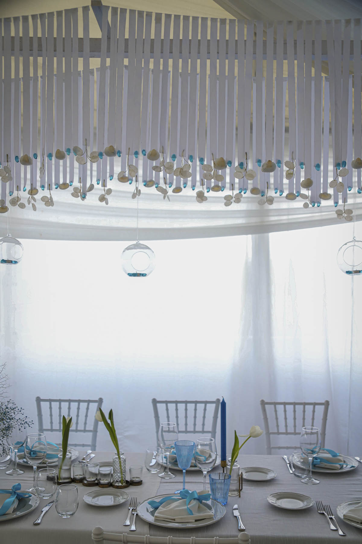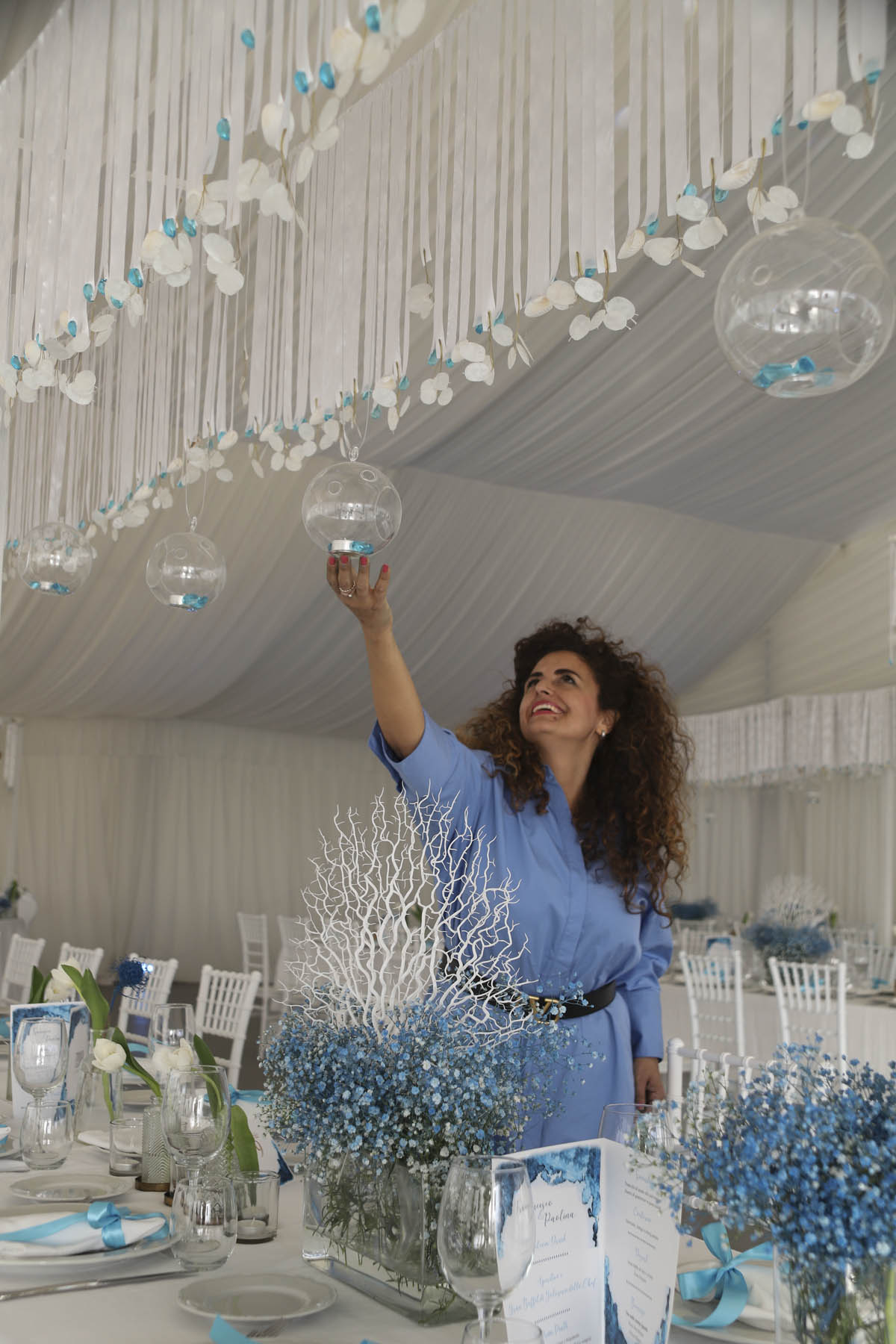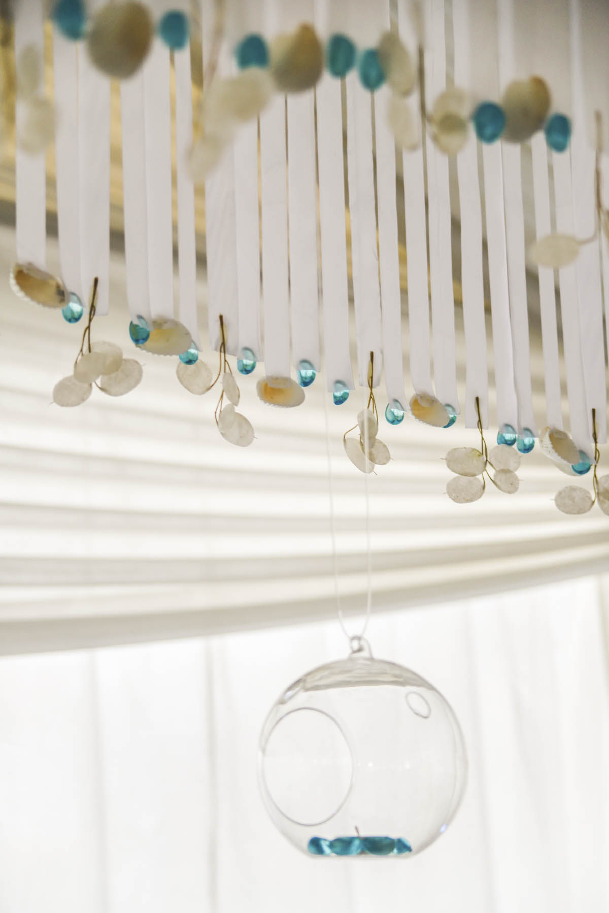 Realizzare il progetto selezionando ogni piccolo dettaglio mi dà una grande soddisfazione. Conchiglie bianche, pietre acquarina, fiori madreperla che sospesi creano un dolce tintinnio. Una volta scelto il colore per il vostro matrimonio vengono definite tutte le decorazioni ed ogni particolare per raccontare la personalità degli sposi. La magia delle luci completa l’atmosfera di una bella mise en place e crea una giusta armonia di gusto, stupore e convivialità. E a voi piacciono i giochi di luci?