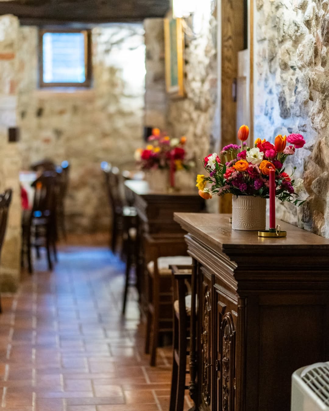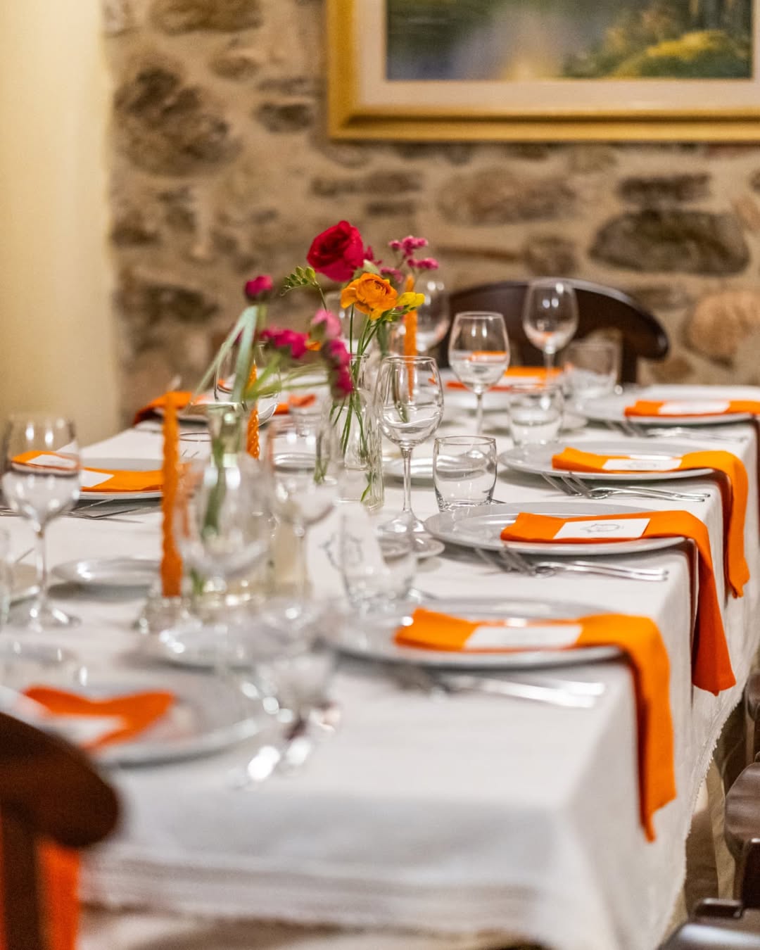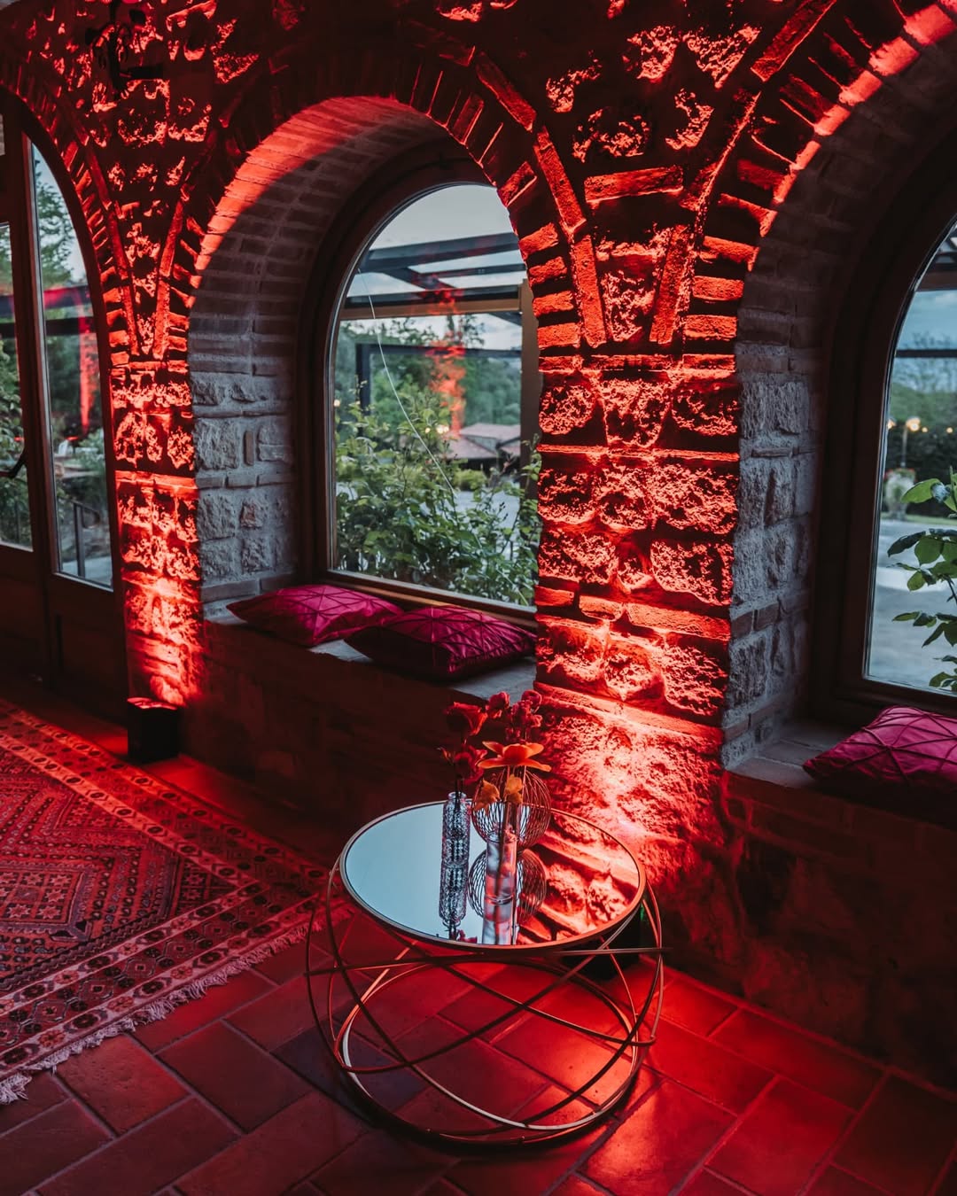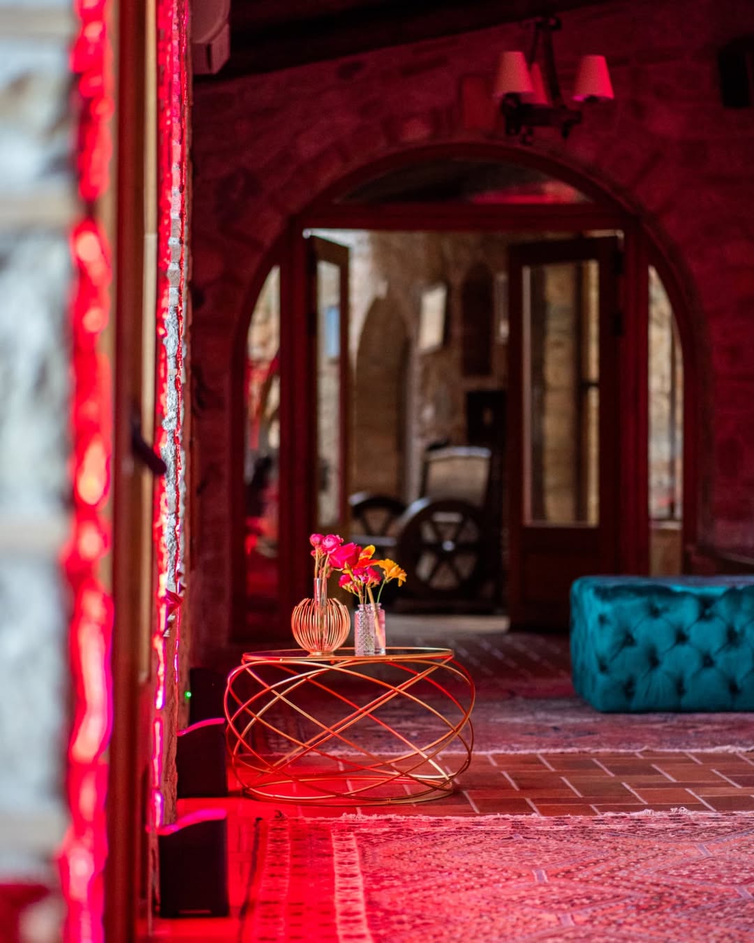 Profumo di primavera per festeggiare Bianca. Verve e tanto carattere contraddistinguono questo party. Colori decisi, profumi inebrianti e tanto charme. Un mix perfetto per raccontare la personalità della festeggiata e dare un’impronta indelebile all’evento. Un evento dove il colore è il protagonista, in un gioco di luci e colori che trasforma la location. Luci nei toni del fucsia per avvolgere le arcate in pietra del portico per una versione più accattivante e calda dell’ambiente. Centrotavola che inneggiano alla primavera con fiori dai colori sgargianti e festosi. Il tableau, una bacheca color ottanio, per contenere card nominative abbellite anch’esse da fiori stilizzati. Un party frizzante curato nei minimi dettagli come solo Mai dire Mai sa fare.